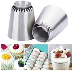 Эта насадка имеет форму открытой звезды с конусом внутри. Позволяет отсадить рельефное снаружи кольцо с пустой серединкой. Идеально подходит для работы с кремом или меренговой массой. Вы сможете красиво и просто украсить свою выпечку: кексы, капкейки, торты и прочее.